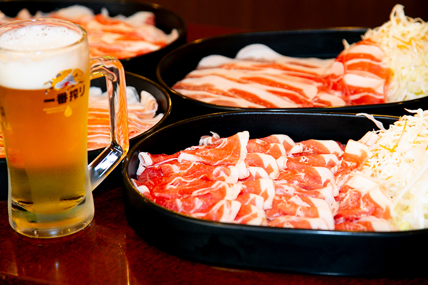 豚しゃぶコース、牛・豚コース、ラム・牛・豚フルコースの3種類のコースから選ぶ食べ飲み放題のお店です。